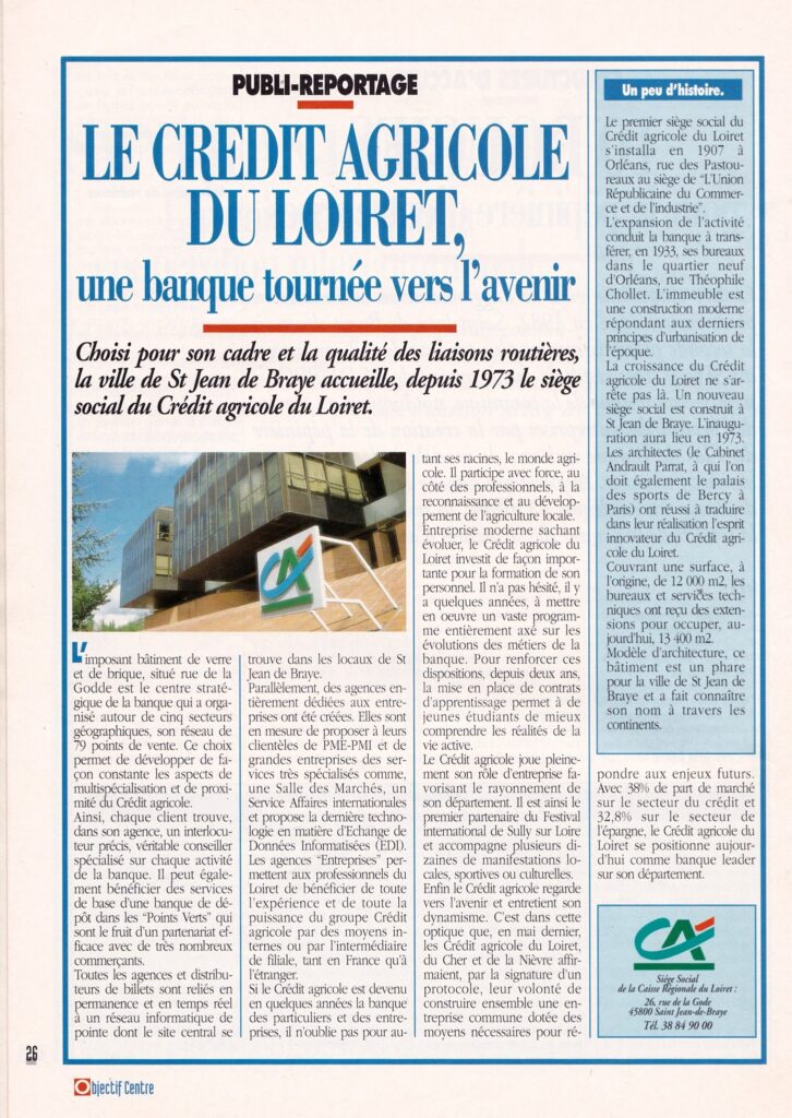 La caisse régionale du C.A a été une superbe vitrine qui a popularisé et valorisé la ville de St Jean de Braye? bien au delà du Loiret.