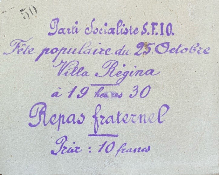 - Le 8 juin de la même année, l’Union des Sociétés de Secours Mutuels du Loiret organise dans la Villa Régina un banquet suite à son assemblée générale, sous la présidence de M. Poux-Laville, préfet du Loiret. Le prix est de trois francs